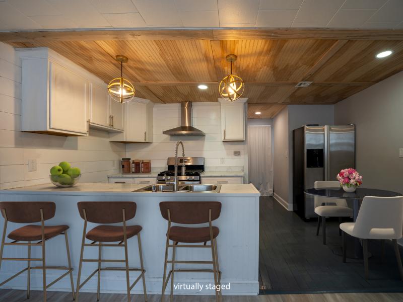 Bright and welcoming, the interior is designed to make the most of its footprint. The open living space feels airy and connected. The recently renovated kitchen and baths bring a fresh, modern feel, with attractive finishes including updated lighting and stylish bathroom tile work.