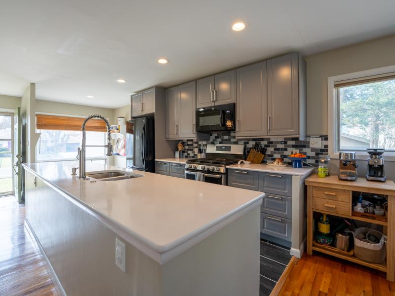 Set on a quiet street just minutes from local restaurants and walkable to Buckingham Lake, this brick ranch offers a comfortable blend of updates and mid-century modern style. The open living space is bright and inviting, with large windows that fill the home with natural light and wood flooring throughout the first floor. A decorative gas wood stove in the living room enhances the home’s character.